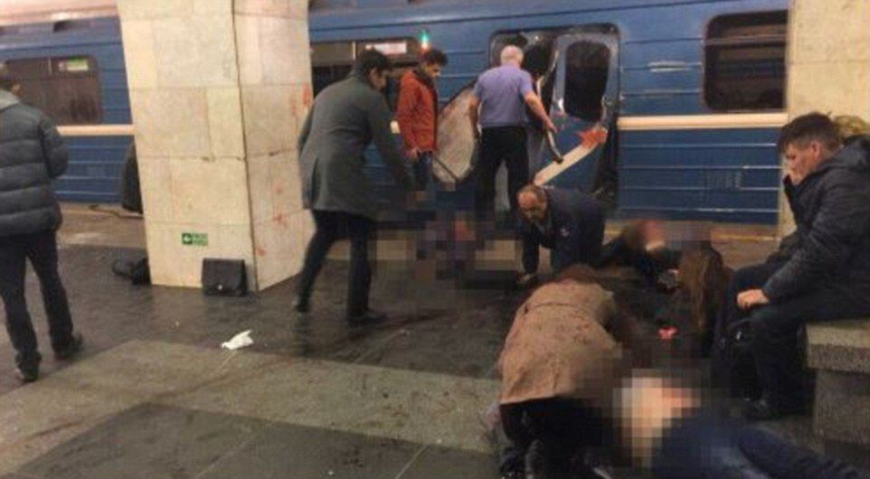 The two blasts occurred between Sennaya Ploshchad and Sadovaya train station in St Petersburg, Russia